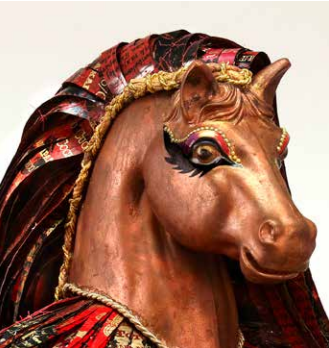 Unlike most other artists participating in Pony Up!, I was offered a head instead of a whole pony. I created a centauress to represent women’s strength, beauty, and power. ‘Phoenix Rising’ is an homage to Talley, who has survived tremendous medical odds.